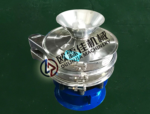 漏斗型旋振篩是為小批量生產中人工投料而設計,篩機上部漏斗可根據使用情況定做開口尺寸,方便人工使用任何工具進行投料作業。注:旋振篩上部漏斗是為方便人工投料設計,不可作暫存小料倉使用,如需暫存料倉可通過歐霖佳機械另加工大小料倉使用軟連接連接旋振篩。