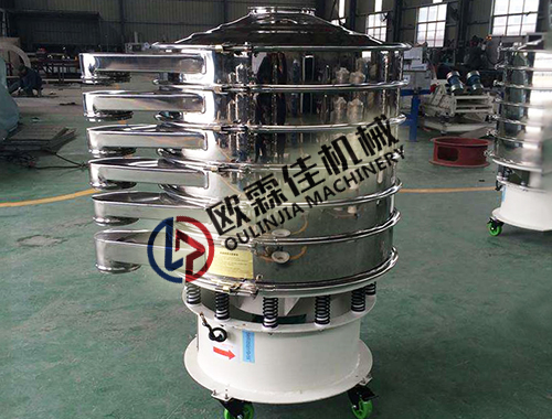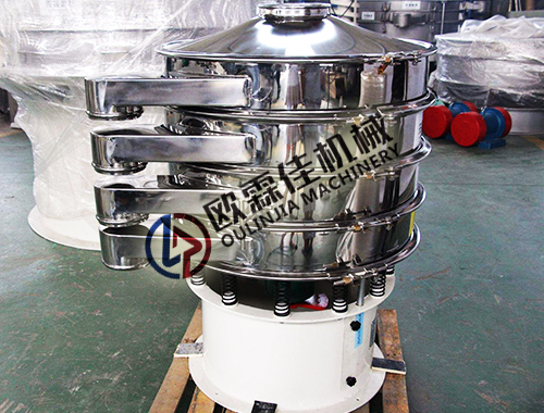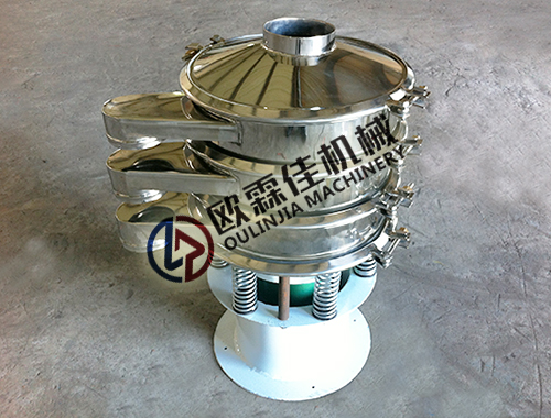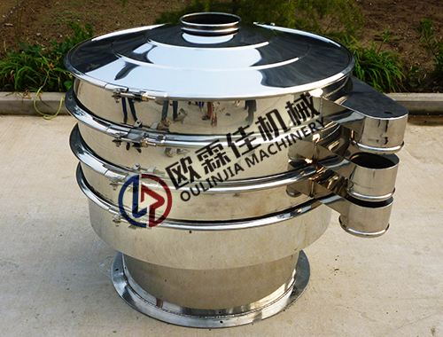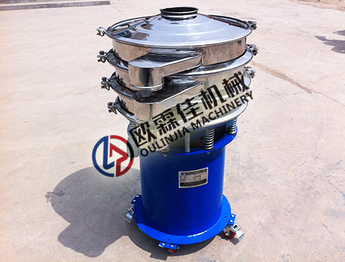 旋振篩是歐霖佳機械主營產品之一,是一種高精度篩分機,總的功能是把干物料分離成不同的粒徑組或從液體中分離出固體。被篩選物料由篩分機上方進料口落入篩面,物料在離心電機產生的三次元振動下在篩面進行螺旋擴散運動,粒徑較小物料透過篩孔自由落下,每種規格的物料均由可360度任意旋轉排料口自動排出完成篩分工作(圖片中排料口重疊是為運輸方便,實際使用中每一排料口均可360任意旋轉)。