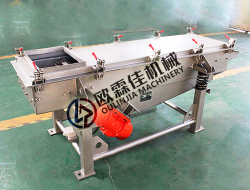 不銹鋼直線篩是歐霖佳機械主營產品之一,該篩分機是利用臥式振動電機激振作為振動源,使物料在篩網上被拋起,同時向前作直線運動,故稱作直線振動篩,又稱直線篩;物料從給料機均勻地進入篩分機的進料口,通過多層篩網產生數種規格的篩上物、篩下物、分別從各自的出口排出。具有耗能低、產量高、結構簡單、易維修、全封閉結構,無粉塵溢散,自動排料,更適合于流水線作業。